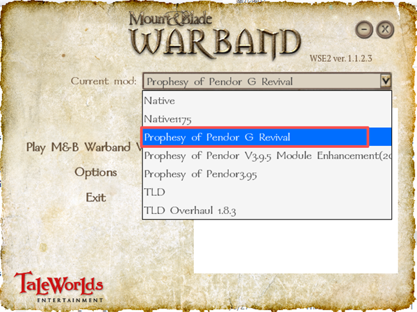 2、点击Current mod,选择潘德的预言g mod;