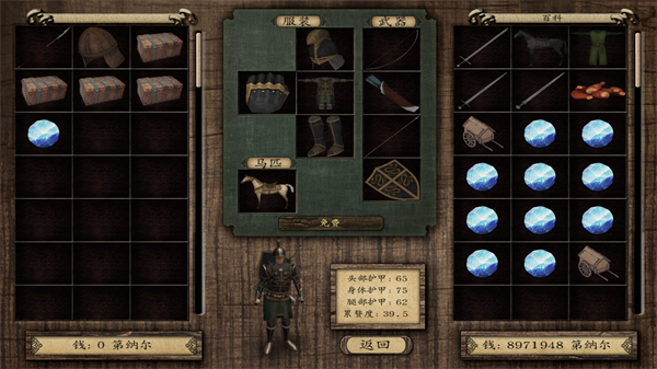 配有马里廷战棍,马里廷骑兵盾,马里廷纯种马,马里廷甲胃,马里廷青铜面具,马里廷金属护腿,沙漏型护手。