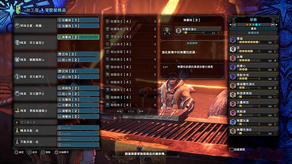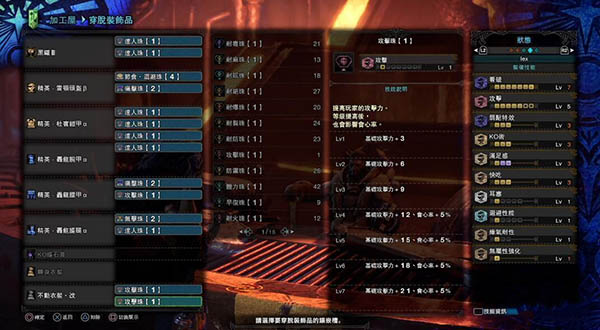 这两套也不是定式装备,稍作改动就能够出到体3或者更为极限的伤害。具体的内容我还会后续进行更新。以上的配装足够打到冥赤龙更新,在此之前这两套灭尽锤足够应付绝大多数情况。如果有联机需要,可以去掉一颗挑战珠换成耐冲珠。