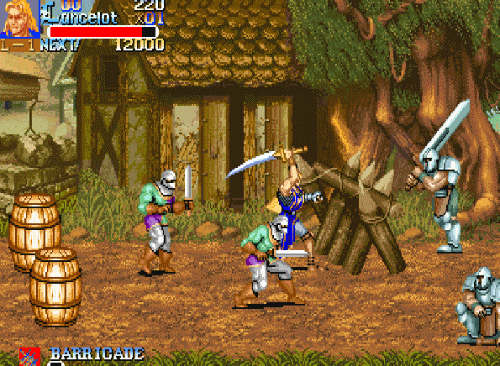 圆桌骑士》里的攻击+↑指令飞踢飞踢攻击范围小、技能发动慢、一旦击中敌人,兰斯洛特还会来个后空翻,每次用完落地都很容易被一通暴揍,这么多缺点,难怪当年在街机厅完全没看到有人用,即便到了高手如云的联网时代,也依然成为被人所遗忘的技能。
