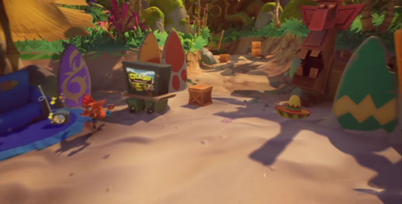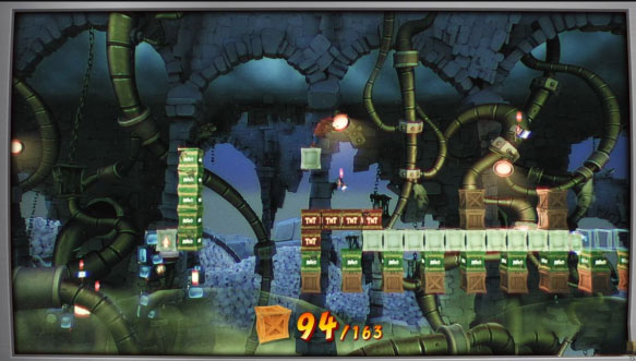 这远还没完,在一些关卡中还埋伏着“闪回磁带”(Flashback Tapes),一共有21个。而每收集到一个磁带后会开启相应的“磁带关卡”,也就是说又多了21关。从游戏玩法上来说,这可以看作是游戏的“挑战模式”,每一关都极具挑战性。而每一关又设立三种颜色的闪回徽章,普通过关获得蓝色徽章(A Sapphire Flashback Relic)打破关卡中90%的箱子可获得金色徽章(Gold Flashback Relic)、打破全部箱子可获得白金徽章(Platinum Flashback Relic)。