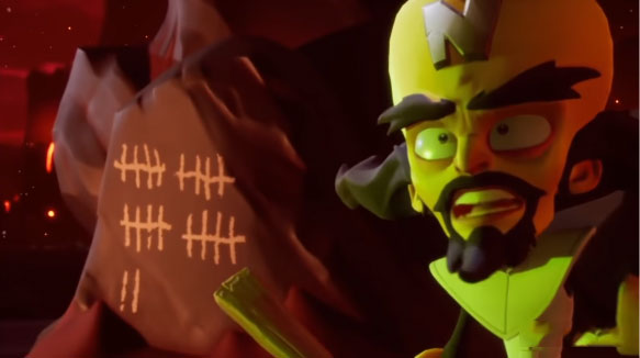 而说到情怀,本作中也有着让老玩家们泪目的内容。首先是一些小彩蛋,比如在开场动画中,故事紧接着三代的完美结局。在三代的结局中, Neo Cortex 和 Nefarious Tropy (还有一个面具Uka Uka)被古惑狼打败后,一起被关到了监狱中,此时他们还是婴儿形态。
