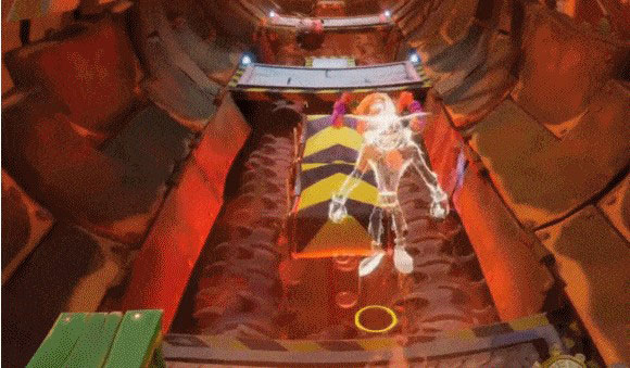 首先,《古惑狼4:时机已到》还是没有解决“不能很好地预判落脚点”这个问题,导致游戏过程中的体验可并没有它的画面所展现出来的那般流畅。这个原因在于游戏依然没有放弃系列的传统:Z轴视角。尽管游戏为玩家在跳跃时设立了黄色圆圈以辅助判断落脚点,但其作用没有在根本上解决问题,判断不到的跳跃距离依然没法判断。这带来的就是一周目过程中的无数次死亡,并且每次死亡还觉得是因为自己很蠢。哦对,还有一点忘了说了,游戏依然是“碰一下就死”的模式。