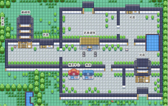 3.打败道馆后,来到河边按【空格键】使用沼蛙跳来到对岸 之后一路来到蓝之镇
