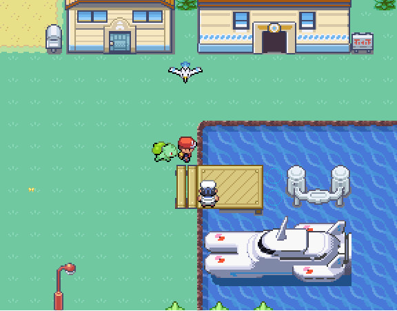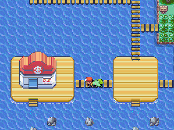 3.打败道馆后,利用沼蛙跳来到小镇右边小岛,从老人处得知要进入礁岩岛必须持有精灵通行证