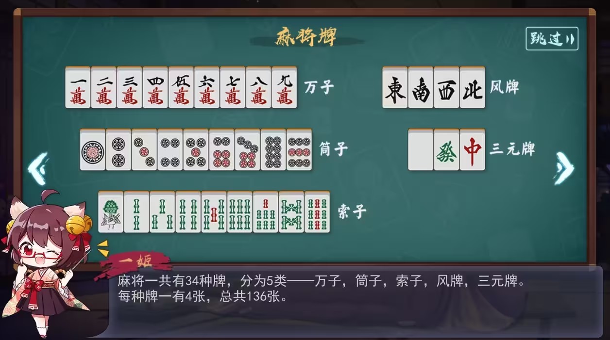 1、麻将牌类型: