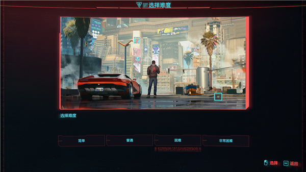 10、点击新游戏,赛博朋克2077提供了简单、普通、困难、非常困难四个难度供你选择;