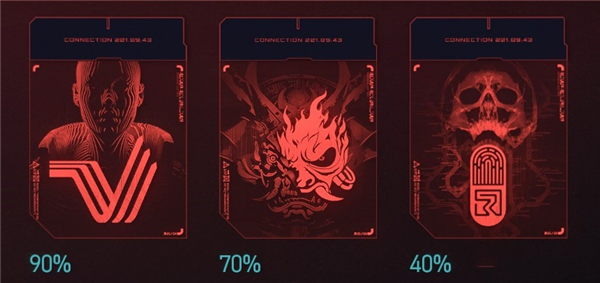 人物控制面板的中上方有3个图标及其进度,第一个表示主线进度,第二个表示和强尼的灵魂融合程度(即好感度),第三个表示芯片对V的意识的侵蚀程度。我们重点关注的是第二个,墓地对话之前,进度是30%,如果选对了,对话结束后这里会变成40%,就激活隐藏结局了。