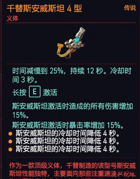 最后说下操作系统,操作系统有三大类,分别是黑客专属的网络接入仓(关联智力,用于扫描,初始送的就是这个),近战刀剑专属的斯安威斯坦(关联反应,时间减缓),近战钝器专属的狂暴系统(肉体,大幅度提升钝器伤害、血量和耐力),只能三选一。除刀剑之外,枪械通用流派一般也选择斯安威斯坦,一个原因是它关联的是反应属性,还有紧急时刻保命或者潜行任务都很好用。