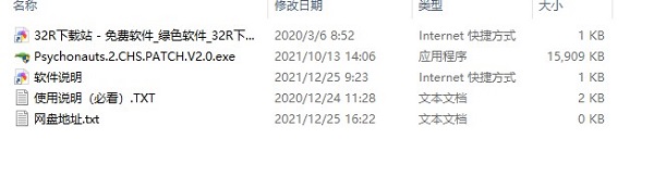 5、将中文补丁Psychonauts.2.CHS.PATCH.V1.0-ALI213.exe复制到刚才的免安装文件夹中;
