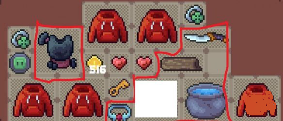 并且由于星星药水有概率爆大诅咒,所以要留图中的4格空白来放大诅咒然后用辟邪手镯销毁掉。