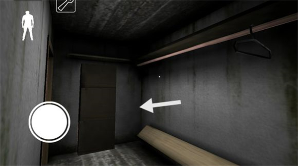下楼梯后左边的地板上有一根黑线,从上面走过铃铛会响,需要注意。楼梯旁的柜子里可以躲,柜子对面有一个门,里面可能刷东西。柜子旁边有一个门通向地下室(由于画面较暗
