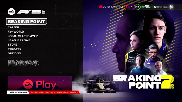 《F1 23》是一款赛车游戏。游戏的故事模式名为《刹车点2》。故事模式的情节围绕着Konnersport Butler全球赛车队展开,这是一支新加入F1赛车网格的车队。 故事模式中,你将扮演艾登·杰克逊(Aiden Jackson)和德文·巴特勒(Devon Butler)这两位车手,他们都从《刹车点1》回归,并成为Konnersport Butler车队的队友。故事的重点角色是二级方程式选手凯莉·梅耶尔(Callie Mayer),她是巴特勒的妹妹,并渴望在一级方程式赛车中成为第一位女性冠军。