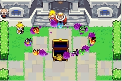 接着猪脚从房间内醒来,出门看宫廷大戏,可怜的公主变成石像被放在一边(保密措施都不做的,不怕大家害怕么?)为了拯救公主,国王委托猪脚去找皮克罗修复圣剑,猪脚带上史密斯之剑和断了的圣剑,拿着地图,踏上征程,目标奇洛丽亚森林!