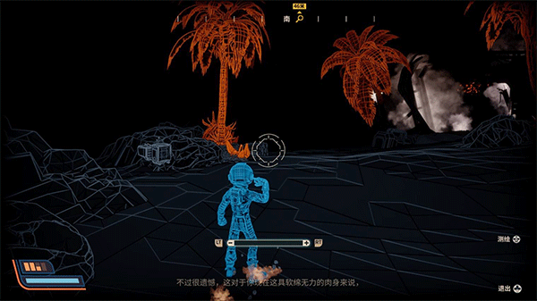 7、探测是我们扫描这个星球,获取资源和信息的主要手段,使用探测会进入上图所示的视觉模式,看到新奇的动物植物矿物或者物体即可长按右键进行扫描。