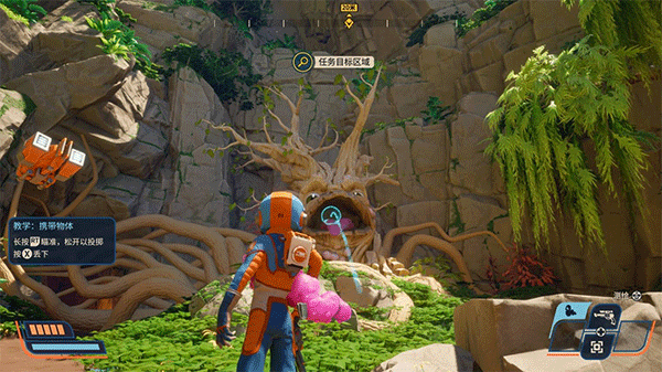 9、然后是这个星球各种奇奇怪怪的动植物,动物分为友善的和攻击性的,然后玩家的选择也只有投喂——可以搜集动物的粪便,直接就是碳元素,或者击杀,狂野星球复仇者增加了抓捕——如果是精英怪,还需要先击晕再抓捕;此外还有投喂大树让它挪动枝条让开道路之类的操作。