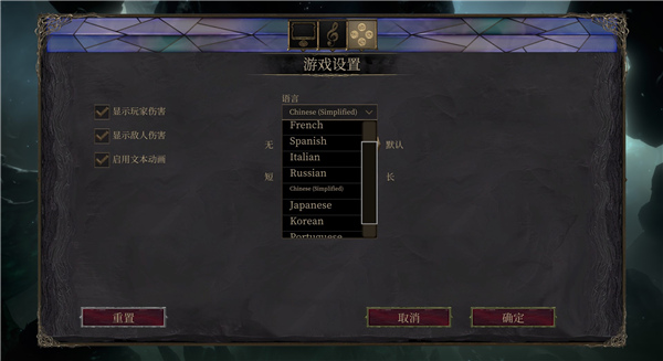 6、在游戏设置中,玩家们可以设置游戏语言,文本等功能;