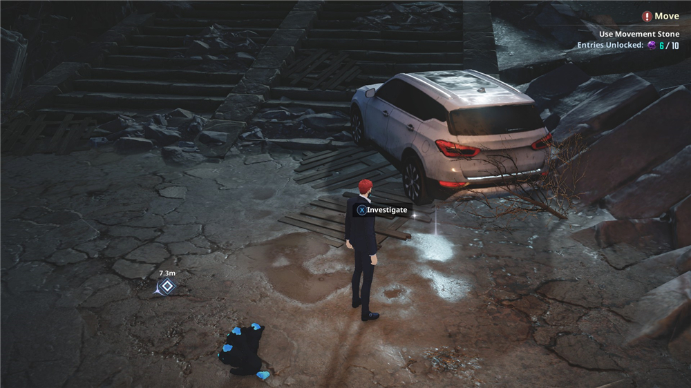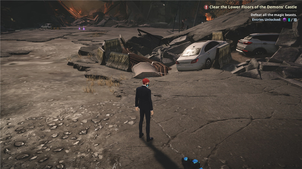 进入区域后,你会在两簇水晶旁边看到一辆汽车,那里就是第一颗黑暗之球的位置。