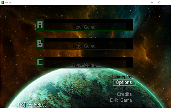 1、进入游戏后,打开options,输入Z确定。