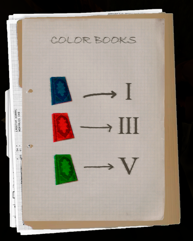 我们进入图书馆,在入口处发现一具尸体,并查看其随身携带的文件夹。里面会显示每本书对应的数字编号。这个线索用于在最后环节叠加书籍开启密道(没看明白的玩家直接照做即可)