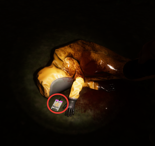 你们把所有人都放倒后,就去房间尽头找那具坐着的尸体。他身上有张纸条,写着我们需要的卡牌颜色比如我找到的是粉色