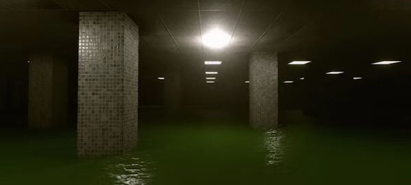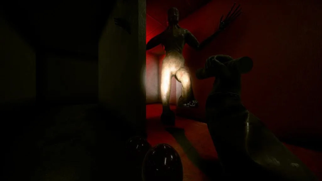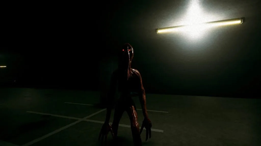 这个生物没有眼睛也没有鼻子,只是一团附肢的集合体,却异常擅长游泳——当您进入泳池区域或下水道房间时就会见识到这一点。如果靠得太近,它会突然扑向您,用那张血盆大口将您吞噬。在泳池区域,必须使用运动追踪器侦测它们的位置来规避。有效策略是不断保持移动,迂回绕过它们可能出现的区域。一旦撞上这种生物,无论有多少生命值都会立即死亡。不过它们无法离开水域,只要上岸就能确保安全。但在下水道房间里,它们完全暴露在视野中,像在高速公路上巡游般在污水中穿梭,甚至徘徊于某些房间内。同样的规则依然适用:靠得太近就会当场毙命。这些生物没有感知能力,只会对接触产生反应。