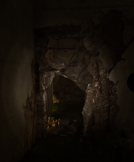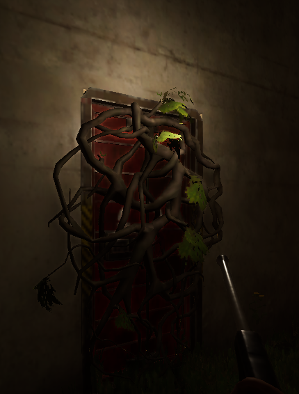 我们沿着长长的走廊前进,来到通往12区的大门前。清除杂草后,我们进入其中。