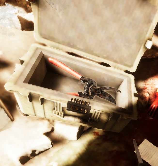 成功猜中最后一位数字后,箱子就会打开,里面装着我们要的剪刀。具体用法下个环节再讲。