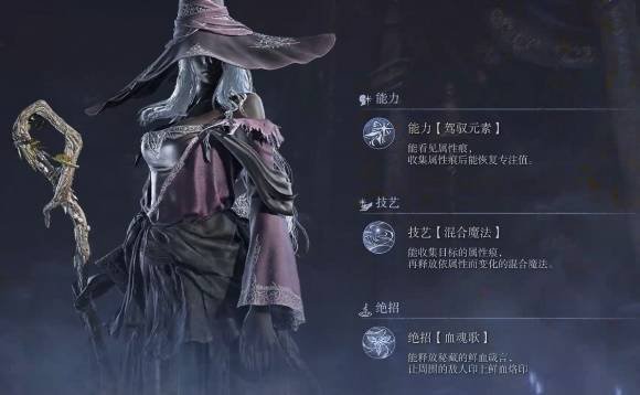 技艺(小技能):混合魔法。收集目标的属性痕,再释放依属性而变化的混合魔法。