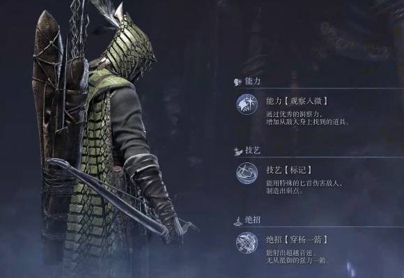 技艺(小技能):标记。瞬移向敌人,用匕首伤害敌人,并制造出弱点。对于持盾的敌人,可瞬移至敌人背后处决。也可用来快速移动,或者用于躲避敌人攻击。