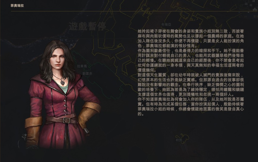 菲奥瑞拉是马蒂娜主线中登场的角色,可惜她与马蒂娜立场对立。若选择帮助图利欧,后续菲奥瑞拉会加入队伍;若选择帮助加洛德,则马蒂娜入队。抛开剧情中秩序与自由的价值观选择不谈——通常此时玩家已将马蒂娜培养成型,很少有人会为了重练菲奥瑞拉而支持图利欧。但菲奥瑞拉作为稀有天赋者(可习得魔法),若对剧情理念无特别倾向,建议选择她。