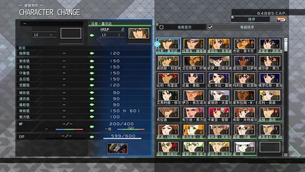 在配属/替换界面可以选择人物,左边一栏可以看到人物的各项属性,角色招募需要通过一些关卡获得。
