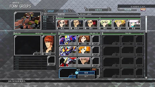 编制军团界面可以用来编制出战的单位,单击空白栏位即可配属/招募人员以及生产机甲。