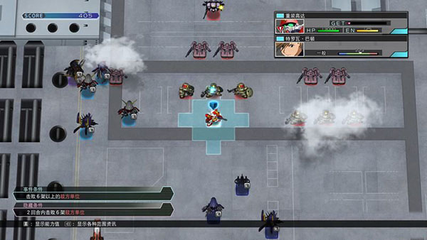 4、本关第二阶段,拖延游戏至第八回合,在剧情上掩护吉恩投降部队(可以绕着场地抻开敌方队伍,战舰比其MS还靠前,由玩家掂量是不是要交火)