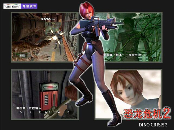 恐龙危机2(Dino Crisis 2)是由Capcom制作育碧代理的一款动作冒险类游戏,这部作品除了继承了前作恐龙危机1的特色外,还有有很大幅度的改进和优化调整。首先在画面上发生了根本性的变化,背景画面从前作的全3D场景改为了同生化危机系列类似的2D CG背景,而且场景方面还增加了丛林、湖泊、火山溶洞等多个新场景,都非常好的体现了白垩纪的自然特色,不仅如此,游戏中登场的恐龙超过了十种以上,还有从来没出现的水龙,并且数量上更是增加了数倍。然后,除了画面有大幅度改进之外,游戏的动作成分也是大量的增加,在操作上做了不少的改动,比如角色在移动上由于游戏节凑的加快而取消了步行,玩家只要按下方向键角色就会直接奔跑,角色的转身速度也相应提高了,还有前作的持枪跑在本作中升级成了移动射击,而且还增加了闪避动作,不仅如此,游戏中新增加了一个副武器特色,玩家可以同时在双手上装备不同的武器,然后进行配合使用;这些改进让玩家在战术上有了更多的选择,当然也更考验玩家的操作水平了,值得一提的是,这部作品会有更多的武器和弹药,玩家的体验和快感直线上升。