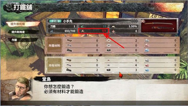 进入铁匠界面之后,选择强化武器,如果选择提升锐利度,就是增加威力,