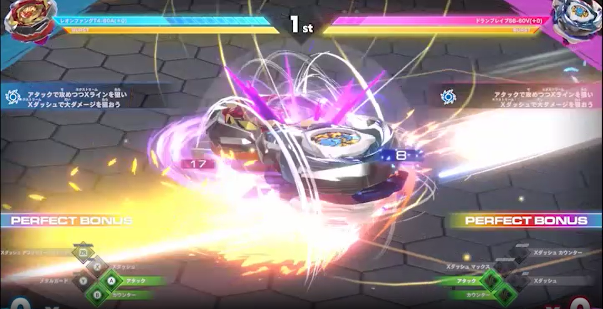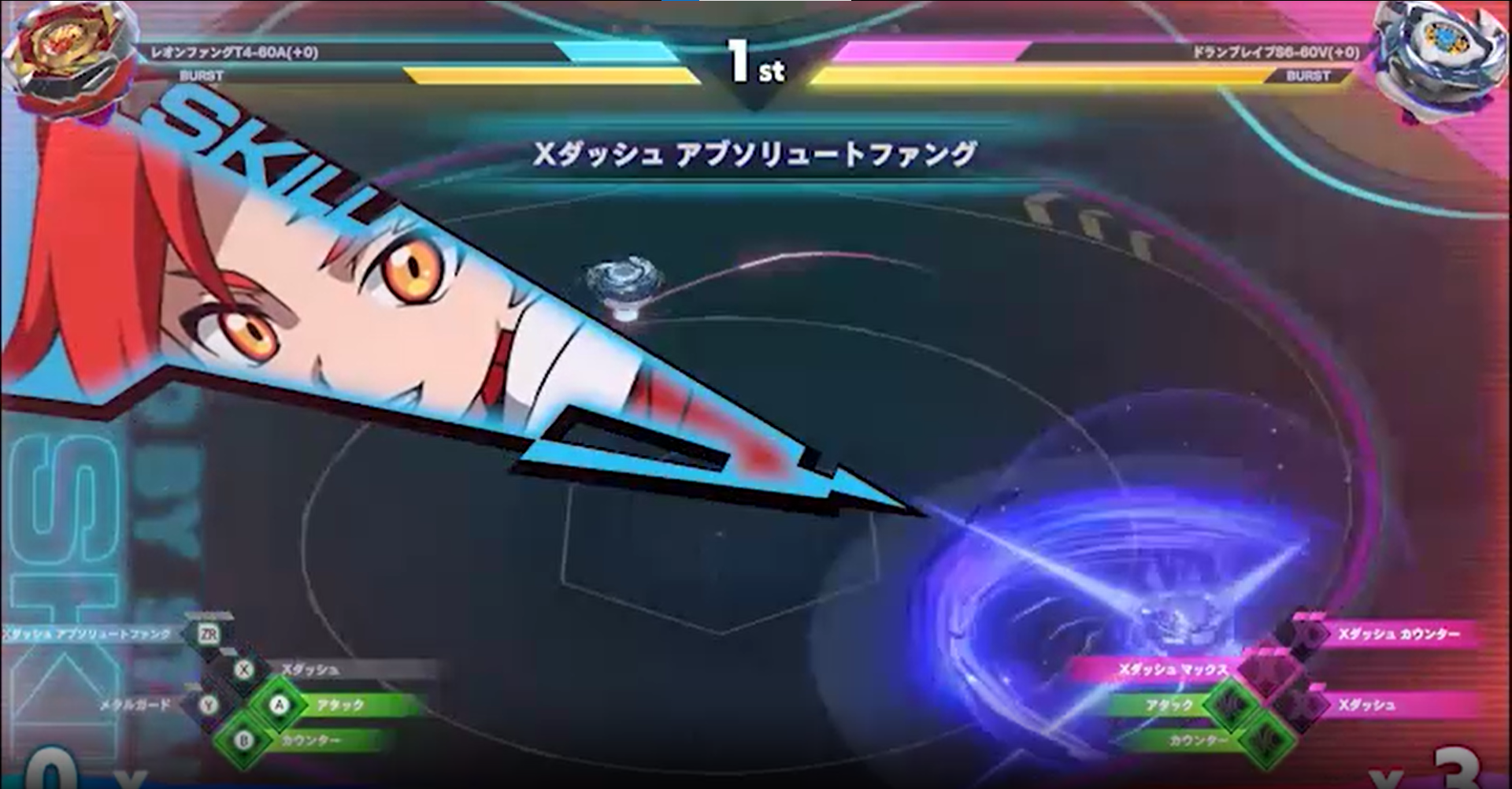 2、当你的攻击命中敌方陀螺时就能使用X 技能,在短时间选择一个合适的时机!
