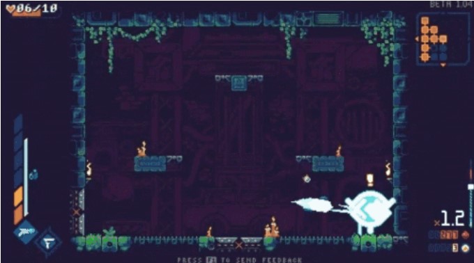 游戏里的敌人大致分为两类,不能飞的,与可以飞的。需要指出的是,《灾厄逆刃》里的小怪同样看似“长相一般、平淡无奇”,但它们也能造成很多麻烦:有些会集中在地形的关键部位,稍有闪失就会碰到,耗费你的血量;有些速度虽慢,但会发射范围化的子弹,碰到就是找死。