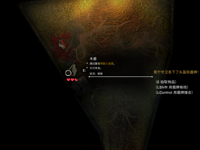9、盾牌的使用,可以通过长按键盘左边的“Shift”键来举盾防御,可以有效抵挡敌人的攻击。