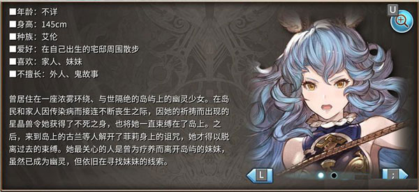 原本长年等待着患病离岛的妹妹回家,但在古兰和露莉亚的劝说下,踏上了寻找妹妹的旅途。