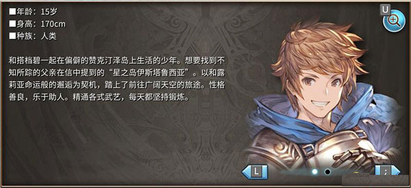 为找到失踪的父亲信中所记述的星之岛“伊斯塔鲁西亚”而踏上旅途,是《GRANBLUE FANTASY》的主人公。