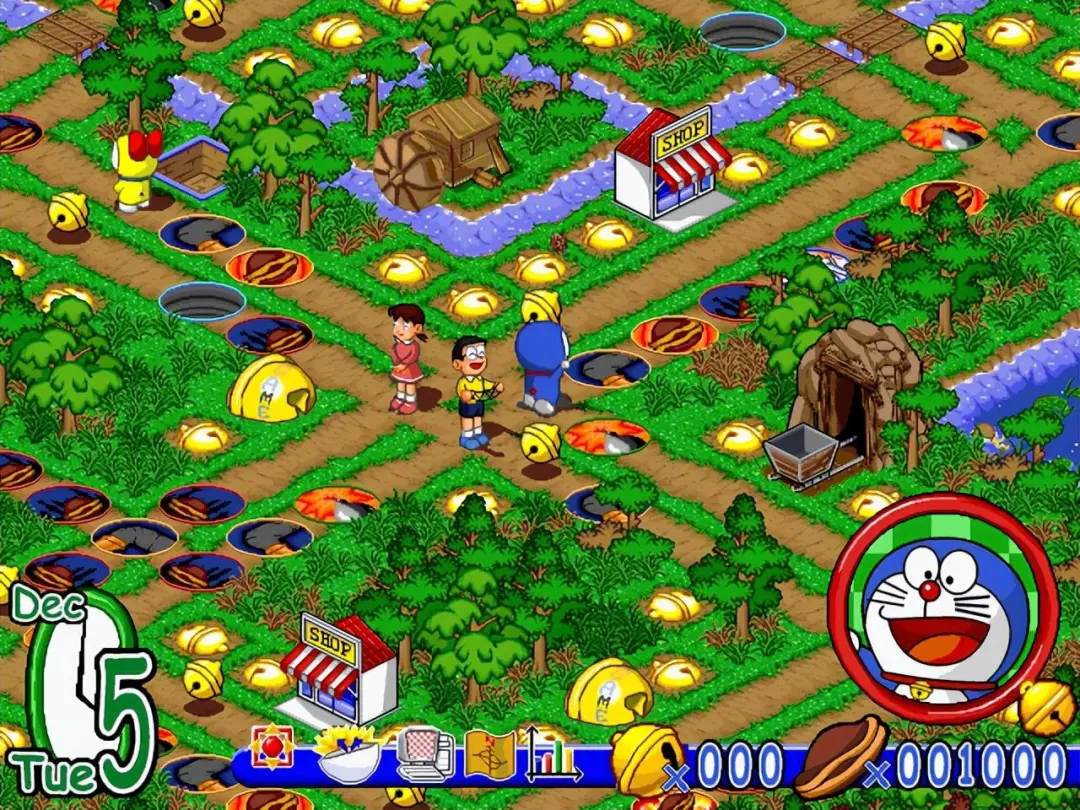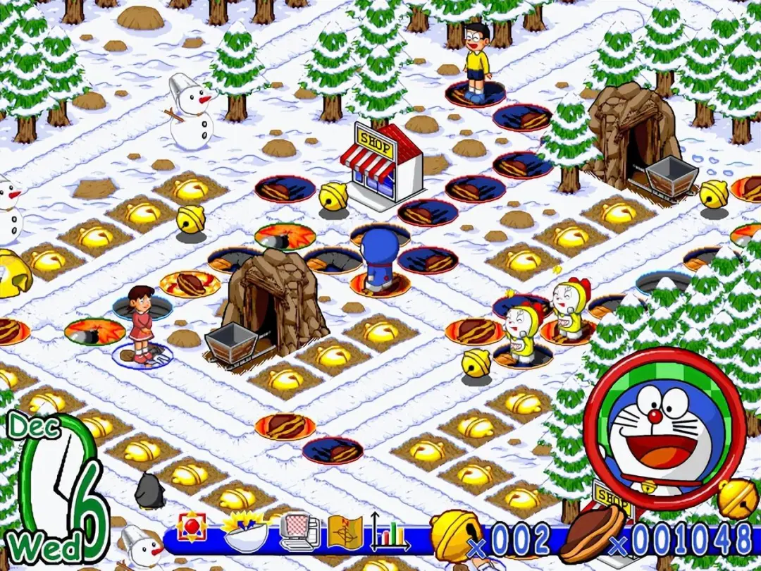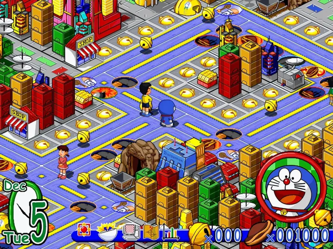 道具:所有道具都源自哆啦A梦的百宝袋,玩家可以利用道具来帮助自己,每个道具都有功用,但玩家必须停在道具店前或路过道具店才能购买或售出道具,但道具竹蜻蜓有bug,出现玩家出售竹蜻蜓时的卖价比买价高一倍。