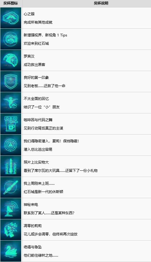 《心之眼》中一共有30个奖杯,其中包含9个铜杯,16个银杯,4个金杯和1个白金奖杯。下面为大家带来《心之眼》中文奖杯列表一览,一起来看看吧。