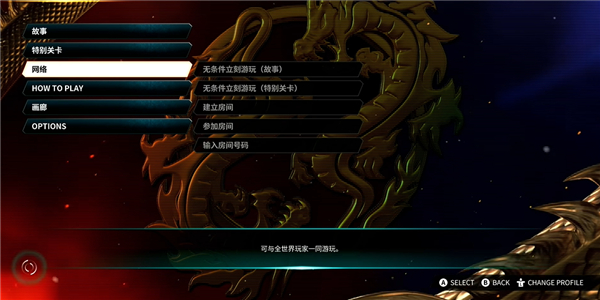 1、进入双截龙再临游戏界面,可以看见多种模式,其中网络则是联机。