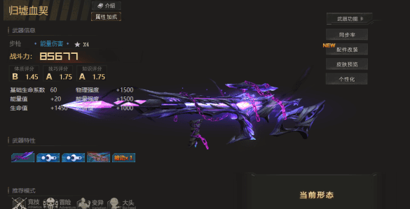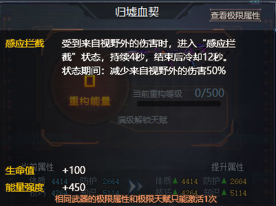 重构需要蓝色碎片5000个,增加400能强,并额外增加1个支援类负荷天赋【感应拦截】。