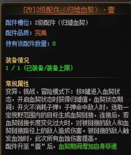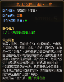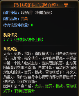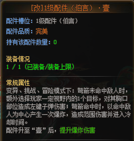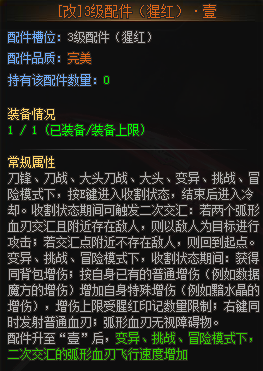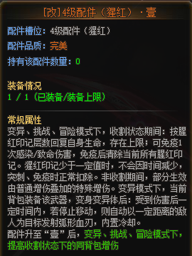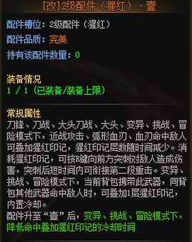 一级配件:猩红输出方面的基础,是刀战、变异模式下远程输出的基础配件。