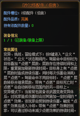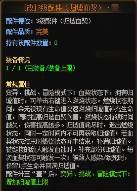 四级配件:综合强化配件,变异模式下印记提供回血和免抓,并且在E技能冷却时间内生效一小部分增伤。提供了亦正亦邪反伤效果。