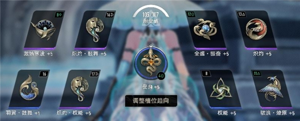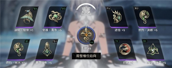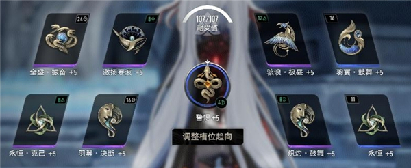 由于不吃技能范围,所以可以放心大胆拉技能持续(1命以上赛琪不需要拉持续),持续的作用是减少血量用完后的蓝量持续消耗,低级图割草可以使用第二套配卡,把进击换成羽翼鼓舞。