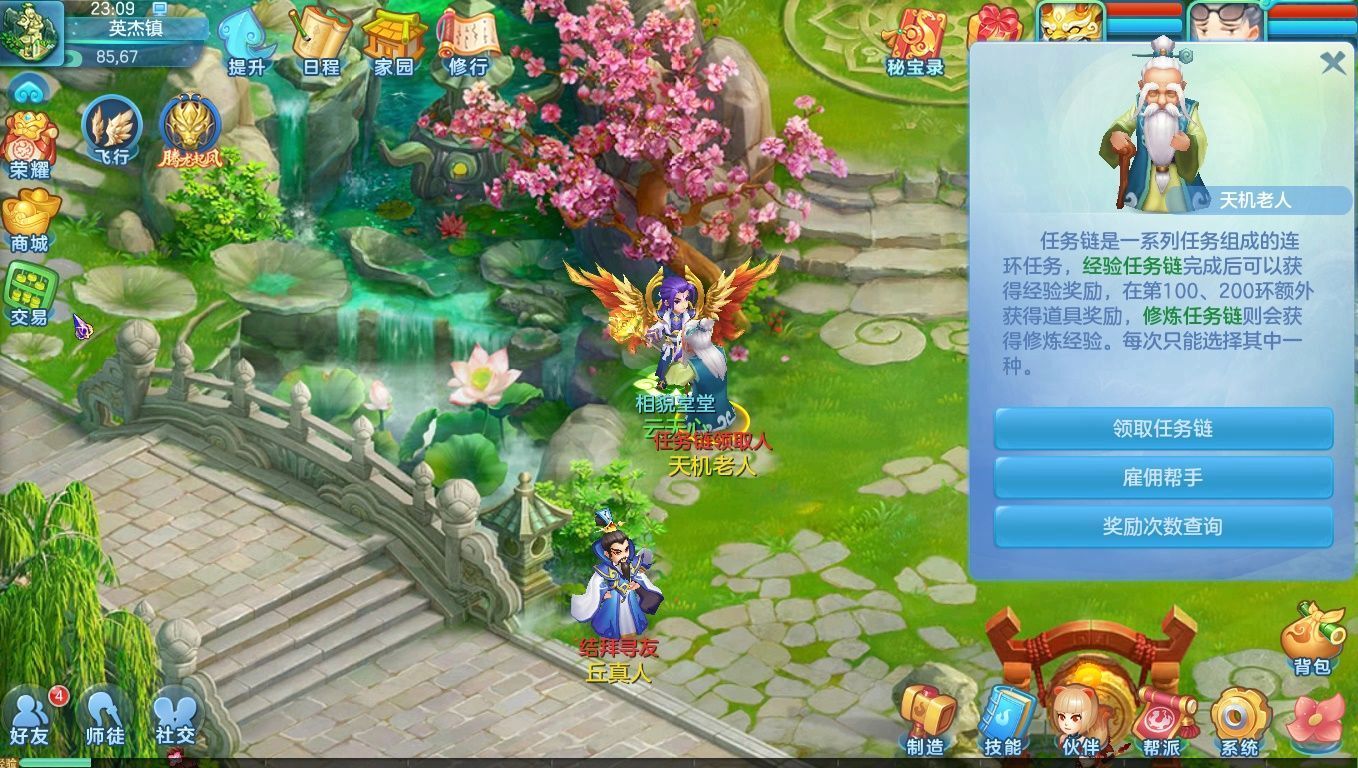 10、任务链(经验,梦想币):任务链分成经验任务连和修炼任务链,更推荐选择经验任务连,通过一系列战斗、寻物、找人等活动获得经验奖励,完整跑完200环人物经验还是很可观的,每完成100环还能获得装备灵等奖励。