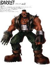 巴雷特脾气暴躁,动不动就暴粗口,这可能与他过去轻信神罗导致家破人亡有关,只有在面对义女玛莲时,他才会显现出温柔的一面。胸前的项链是好友丹恩妻子的遗物,丹恩临终前将它交给了巴雷特保管。